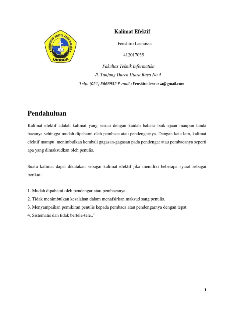 Dua istilah tersebut sering kita ditemui dalam penulisan karya sastra dan ilmiah. Download books for free, search ebooks. Download kalimat efektif for free. Kalimat efektif ialah kalimat yang singkat, padat, dapat menyampaikan pesan secara tepat dan dapat dipahami secara tepat pula. Kesenyapan bunyi pada awal kalimat biasanya berupa penggunaan huruf kapital.